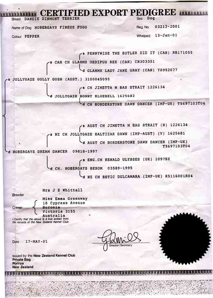 GERMAN DANDIES' Monika & Manfred Rosenbaum Telefon:0049 (0)202-81186 |